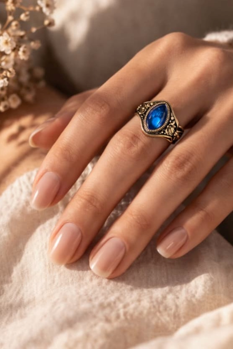 Este anillo para mujer presenta una hermosa Piedra en corte marquise (navette), engastada en un delicado diseño ornamental y detalles en relieve. Fabricado en Latón con baño dorado envejecido y detalle de trabajo artesanal, dándole un estilo Victoriano, vintage y sofisticado. Fabricado en la tradicional joyería de Jaipur – India, reconocida mundialmente por su arte en piedras naturales.