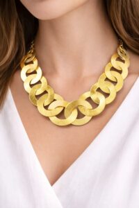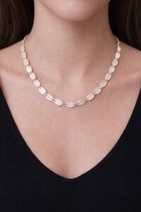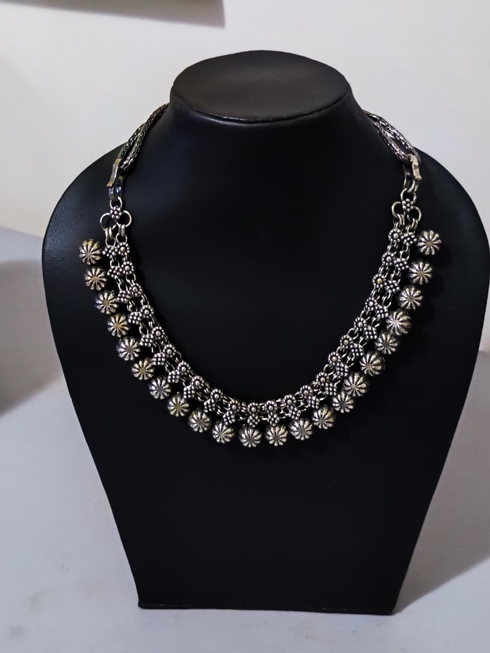 Este collar de India Dharma está elaborado íntegramente a mano en Jaipur, reflejando la rica tradición artesanal y espiritual de la cultura hindú. Fabricado en una combinación de cobre, plata y acero, une resistencia y simbolismo en una elegante pieza de color plateado. Su diseño versátil lo hace ideal para cualquier estilo, y es una opción perfecta para regalar  ya que combina historia, significado y belleza en un solo detalle.
