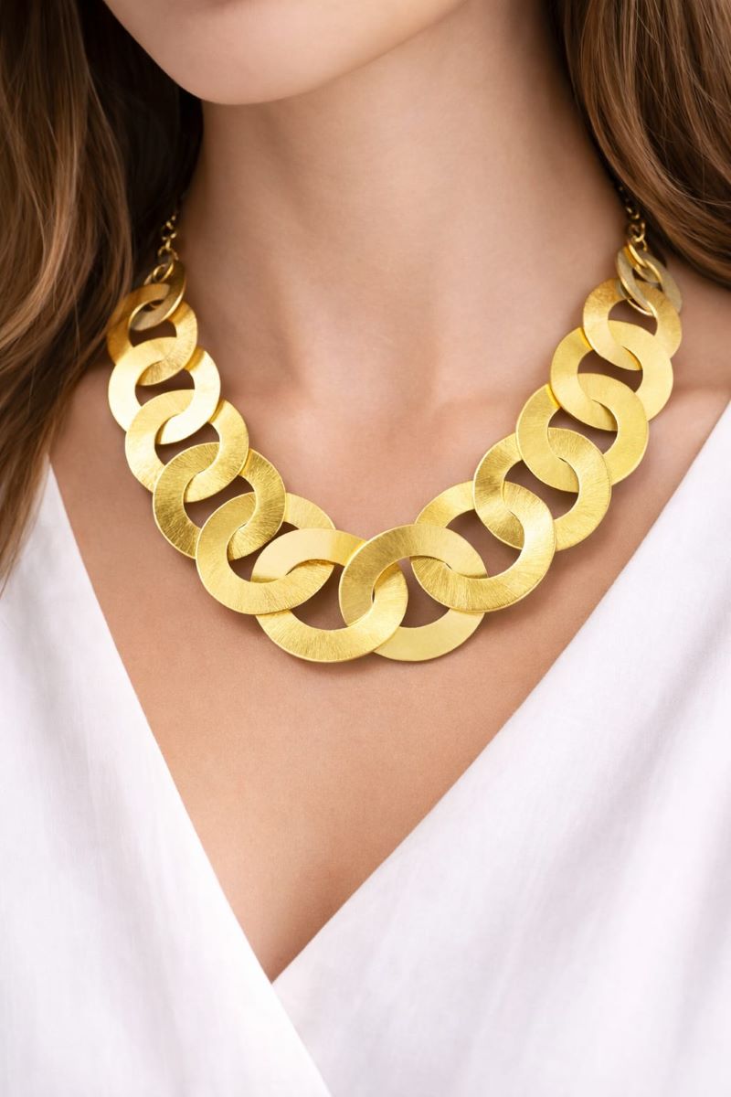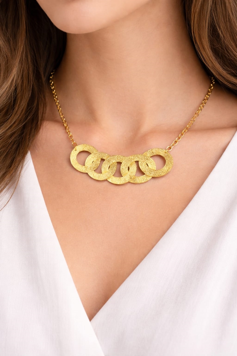 Bisuteria Boutique Collar Dorado de Aros Entrelazados – Artesanal Jaipur -India