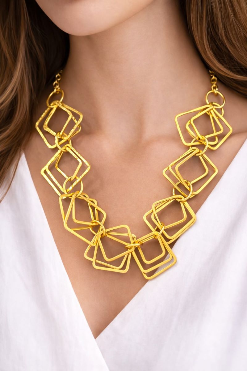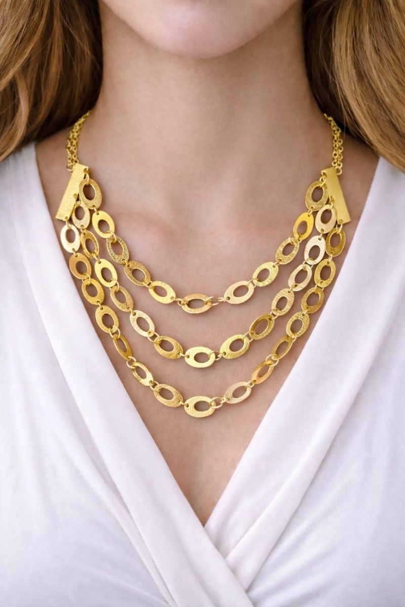 Bisuteria Boutique Collar Dorado de Eslabones Planos – Artesanal Jaipur -India