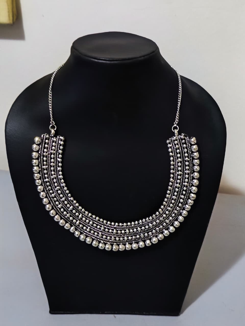 Bisuteria Boutique Collar Plateado Mujer Con Eslabones Ovalados Jaipur India