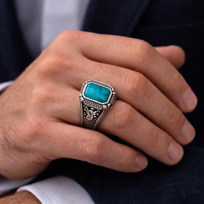 Anillo Hombre Turquesa Rectangular – Jaipur – India