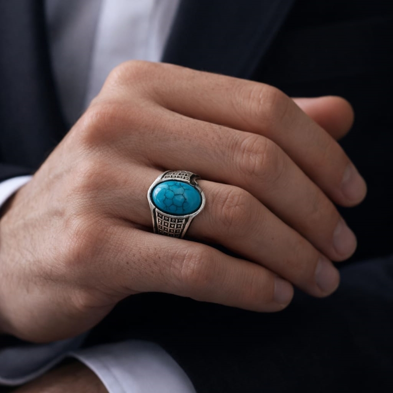 Anillo Hombre Turquesa Oval – Jaipur – India