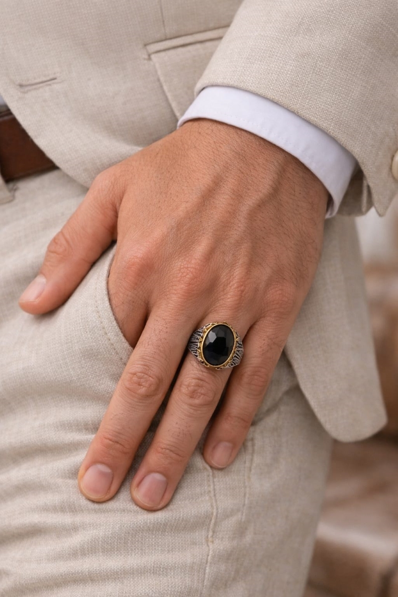 Bisuteria Boutique Anillo Hombre Con Piedra Obsidiana Negra Jaipur -India
